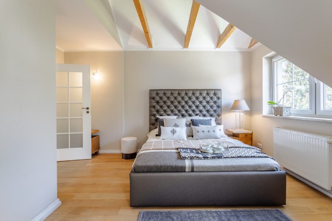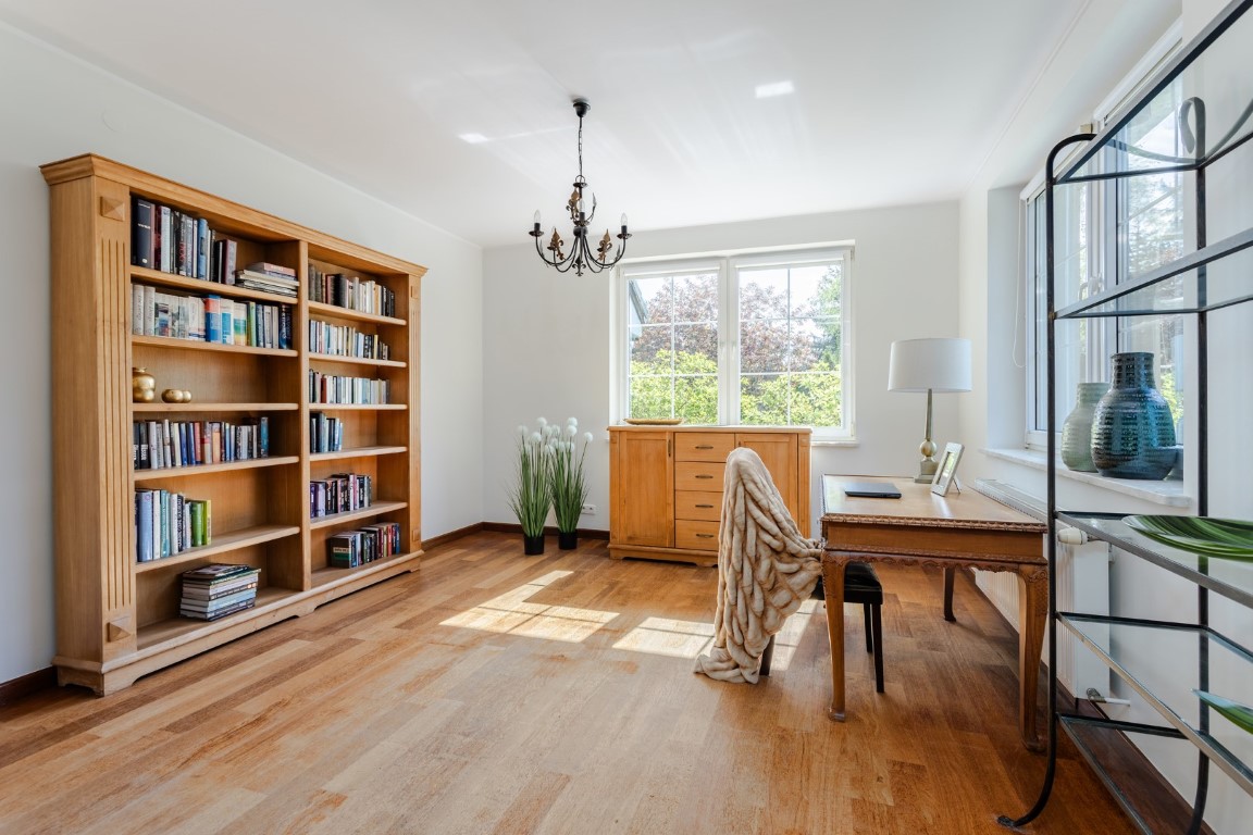 Situated in a lagging forest, overlooking 100-year-old historic oak trees, it offers a peaceful atmosphere in a neighborhood of single-family homes, while providing quick access to the center of Poznań.