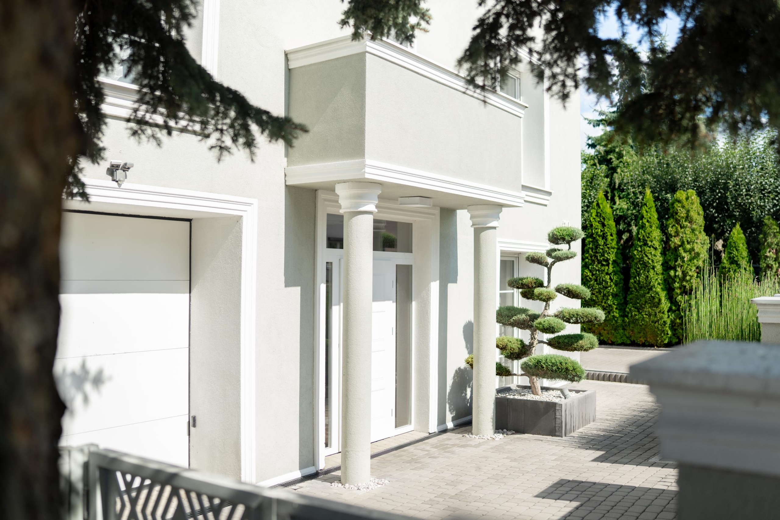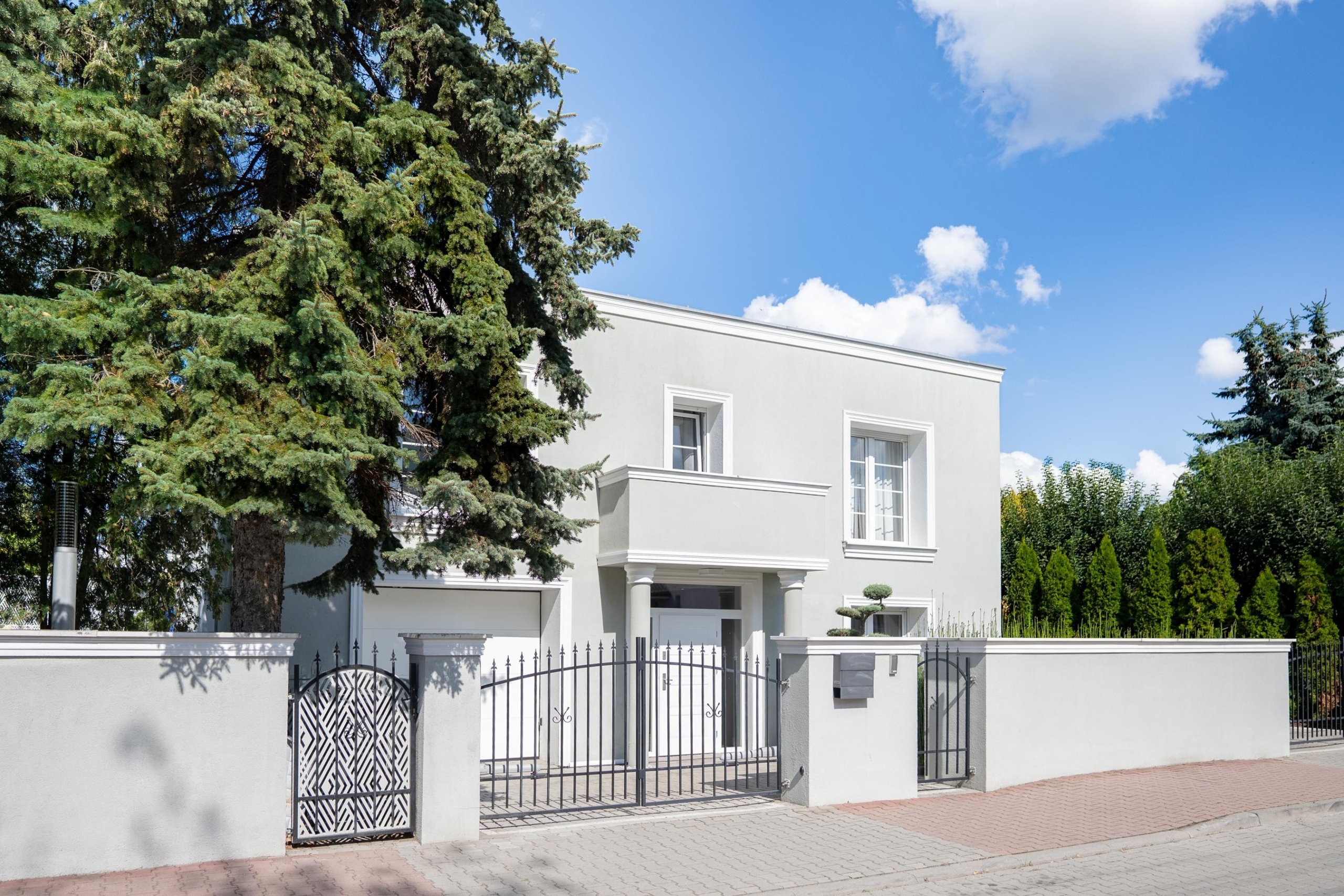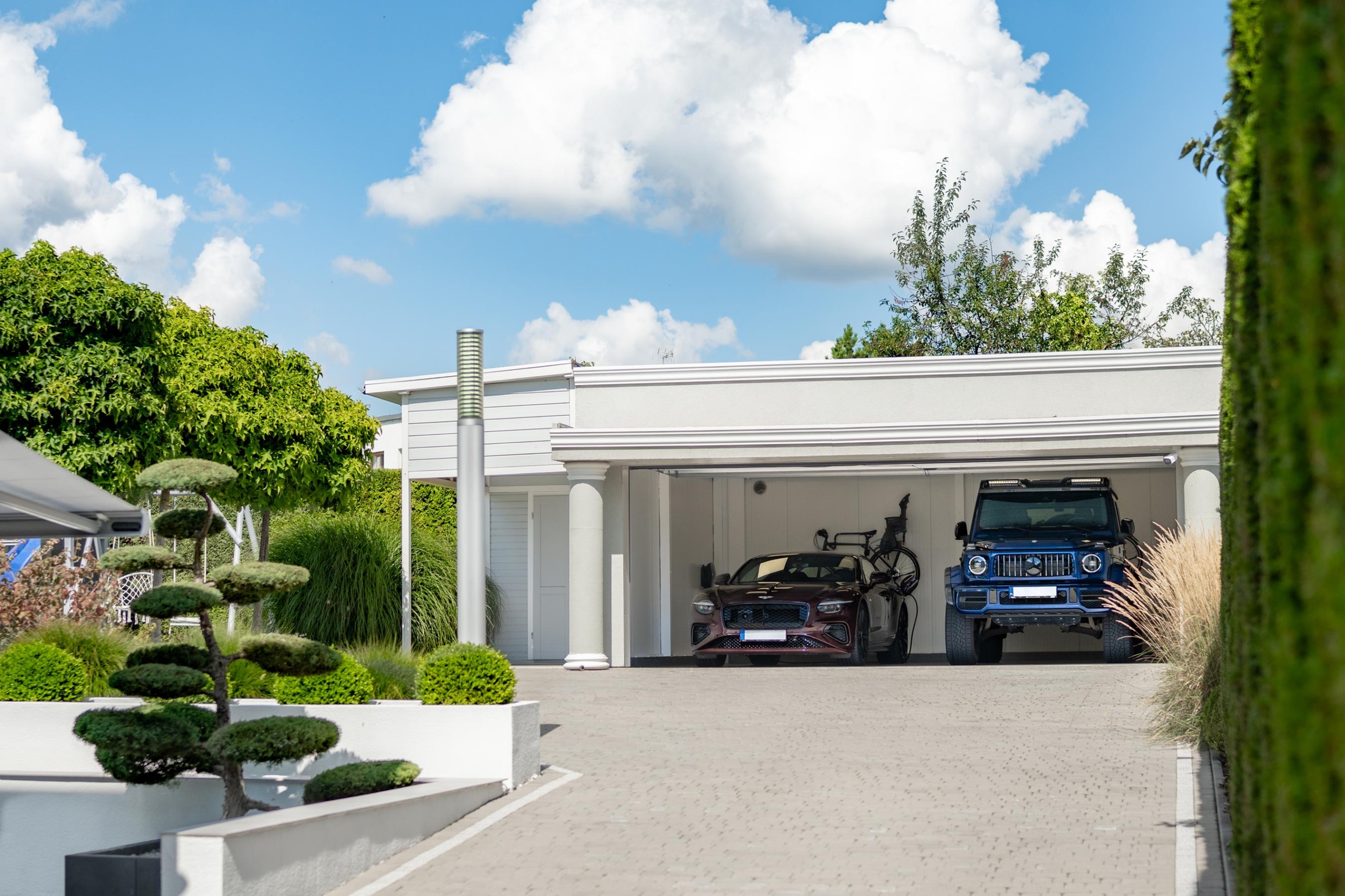The paved driveway hides large retention tanks underneath, which effectively drain water even during heavy rainfall, keeping the area in ideal conditions. The garden irrigation system is fed from a deep well with a high-end filter, providing completely free water for watering.