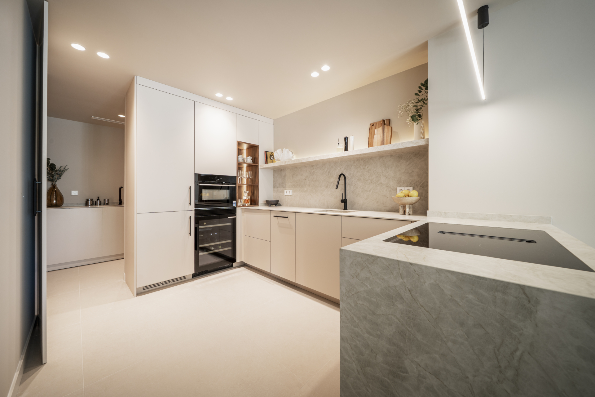 equipped kitchen is the functional center of the house and connects to the living room with