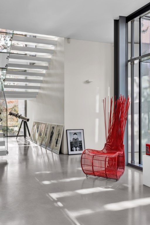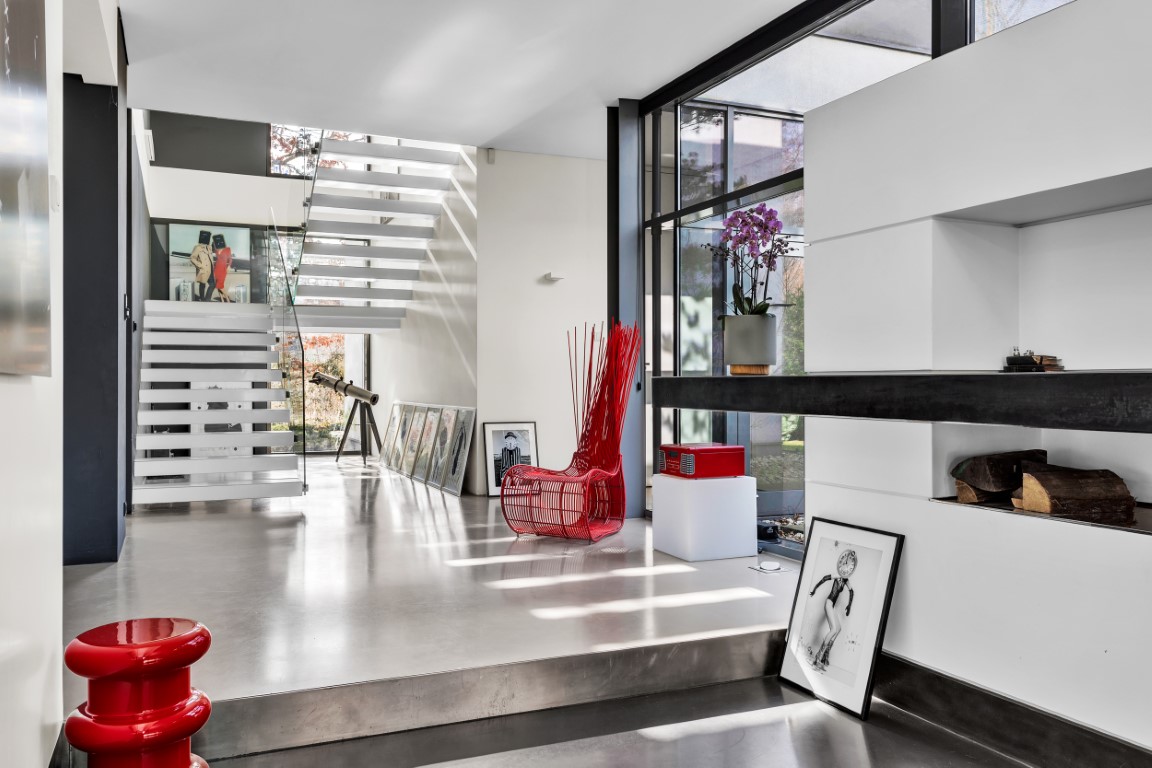 Stunning modernist architecture full of technical and architectural innovations, high standard of finishing. The predominant finishing materials are concrete, glass, wood and stainless steel.