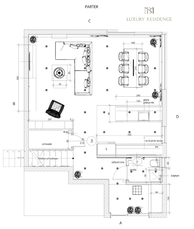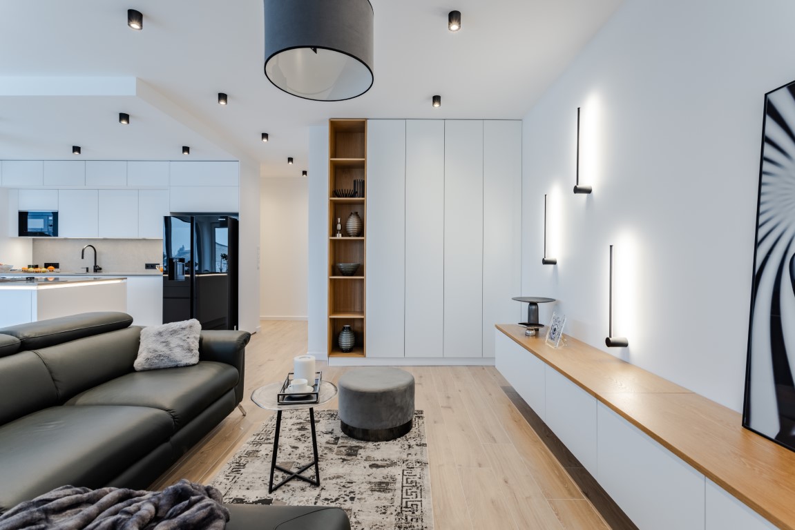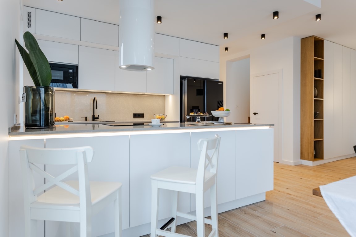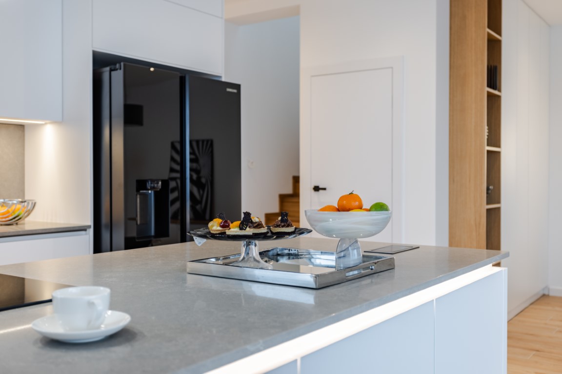 The kitchen is equipped with high-quality household appliances (Elektrolux, Franke, Samsung).