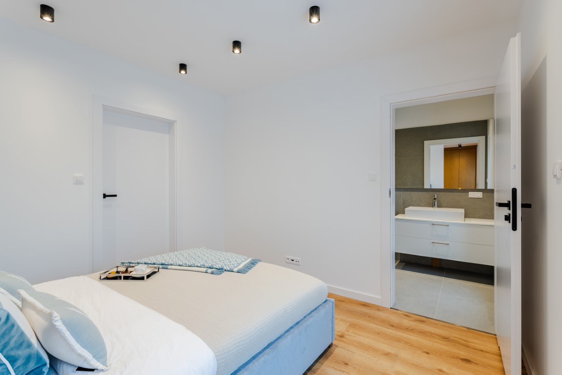 Master bedroom with its own bathroom and dressing room, bathroom with bathtub, two bedrooms, laundry room.