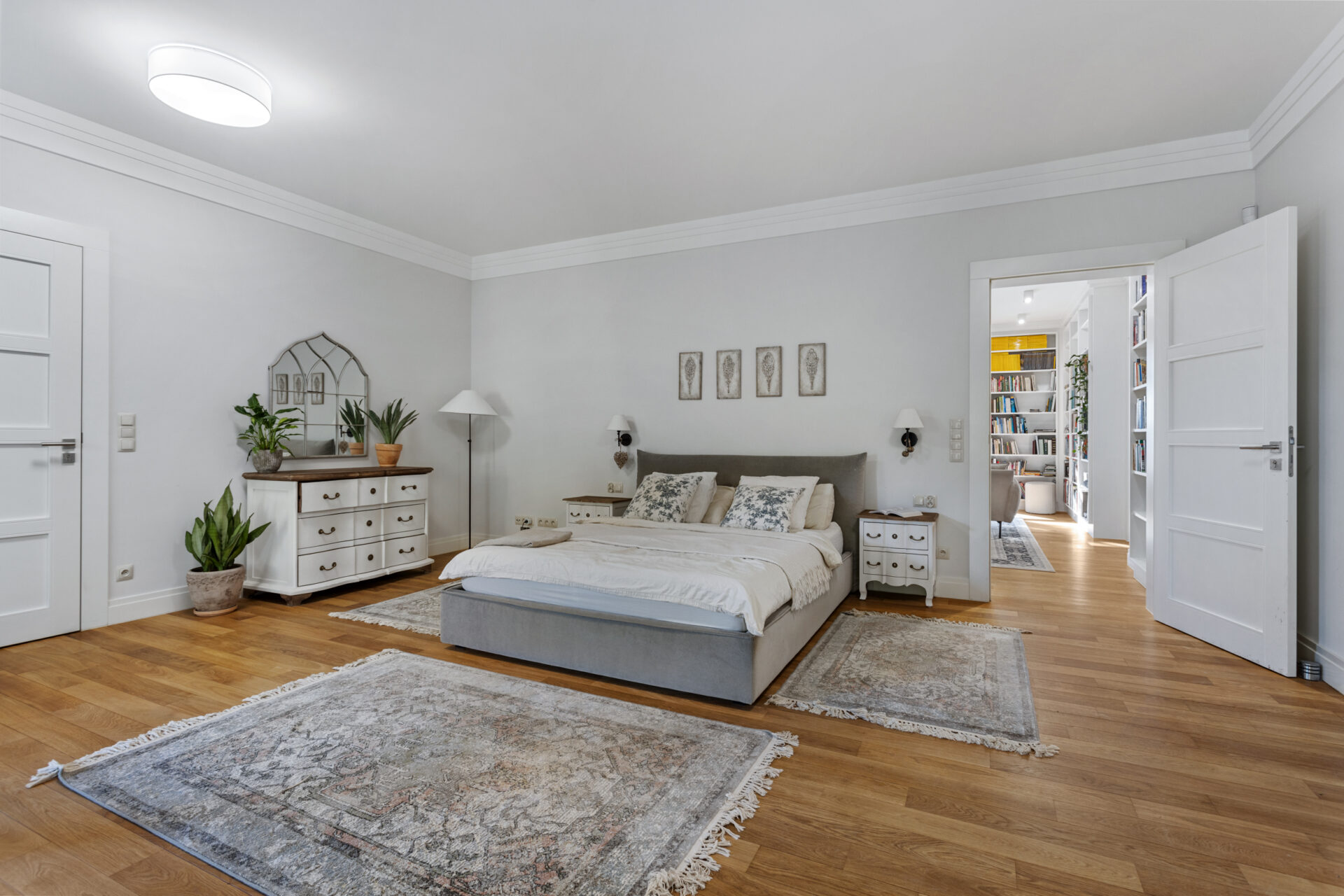 On the first floor of the residence there are two bedrooms with bathrooms with heated floors, including the main one with access to a dressing room, a fireplace and access to a beautiful terrace.