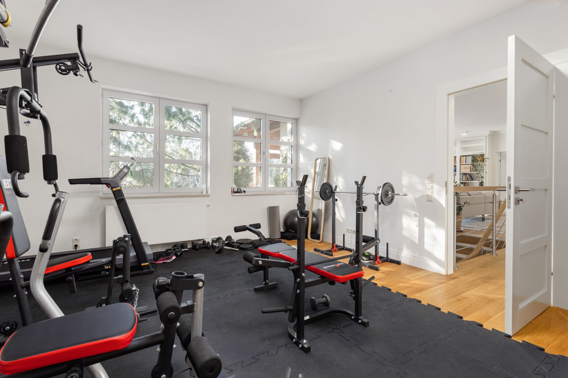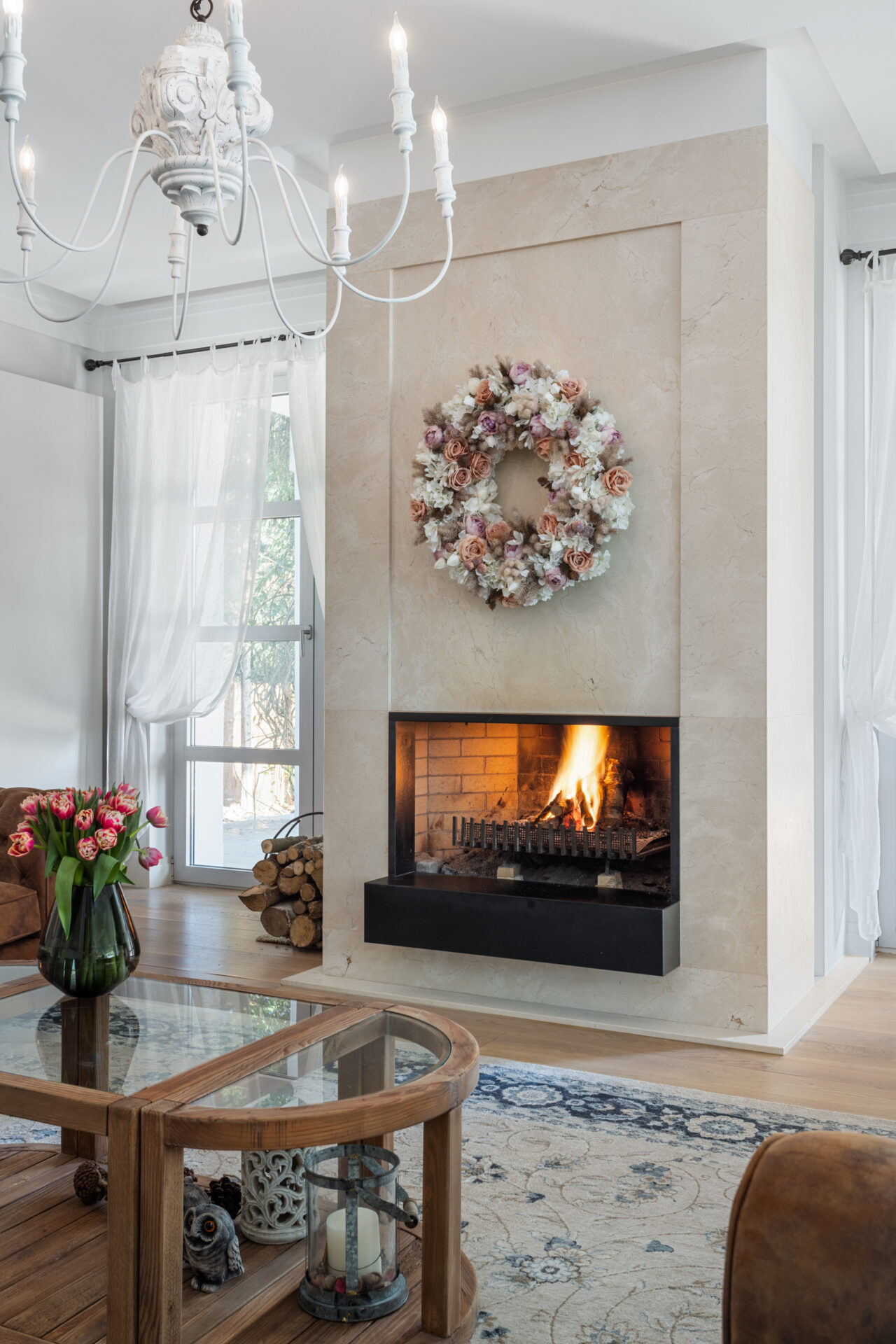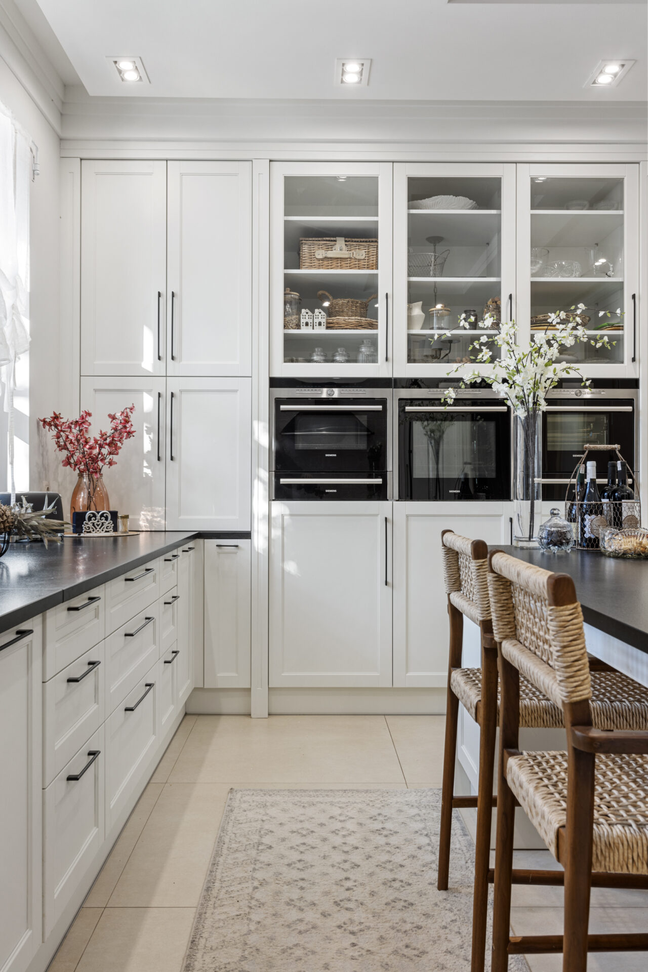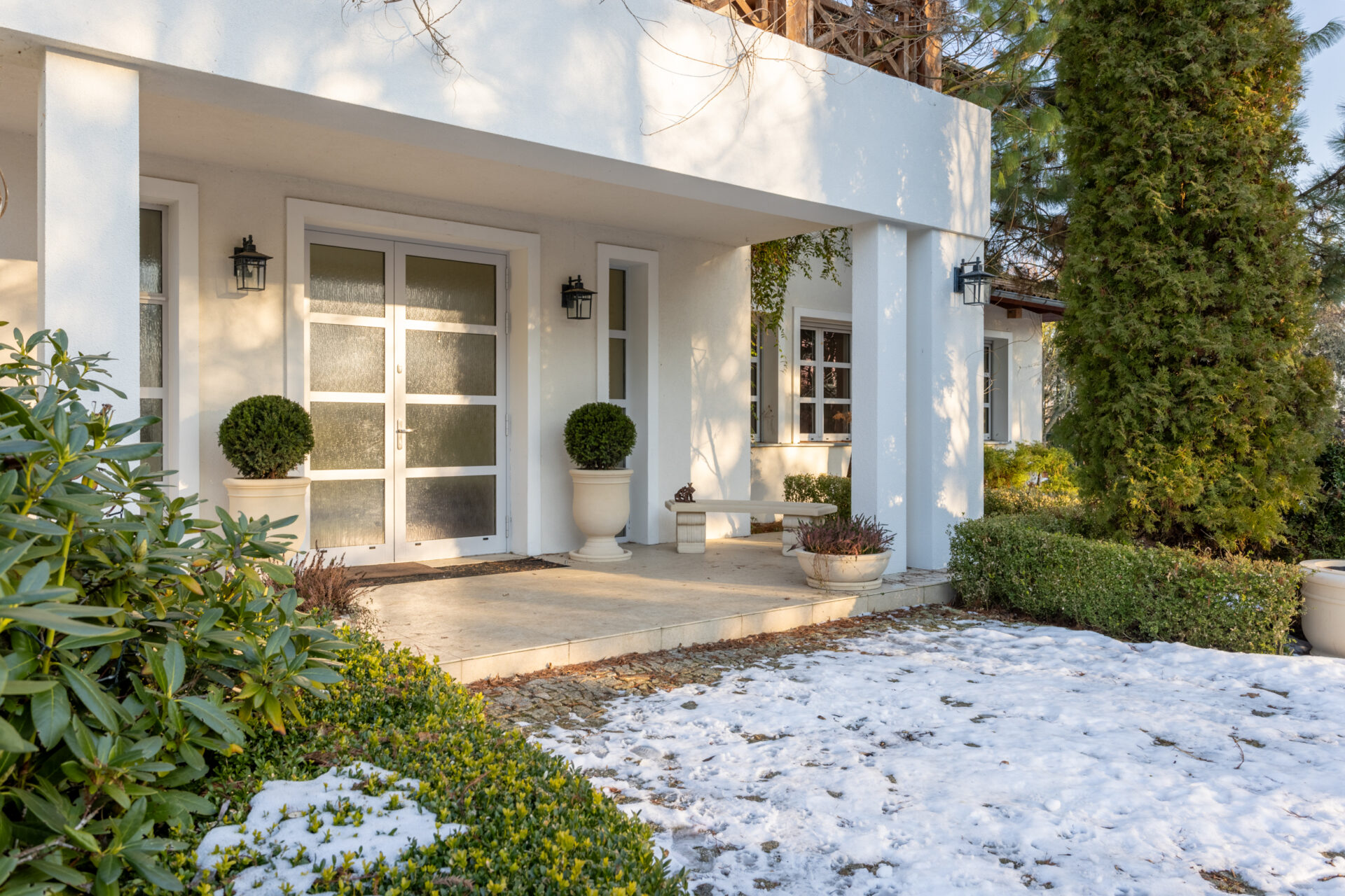 The building, as well as the garden, was designed with attention to every detail and capturing the Mediterranean character. The classic body is finished with natural stone, ceramic Kavthego roof tiles and wooden elements that harmoniously fit into the surrounding landscape. The tall, perfectly lighted interiors, 3m high, are distinguished by an elegant combination of wood, travertine and marble. They are dominated by a warm, bright color scheme – shades of white and beige, green and brown.