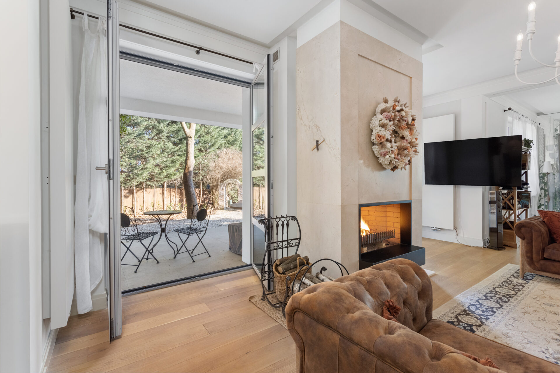 The property comes with a garage with two glazed doors, stalls for 4 vehicles, built-in pavilions, a canal and HERMAN sectional doors. The house is also equipped with smart solutions, taking care of the owners’ safety and comfort.